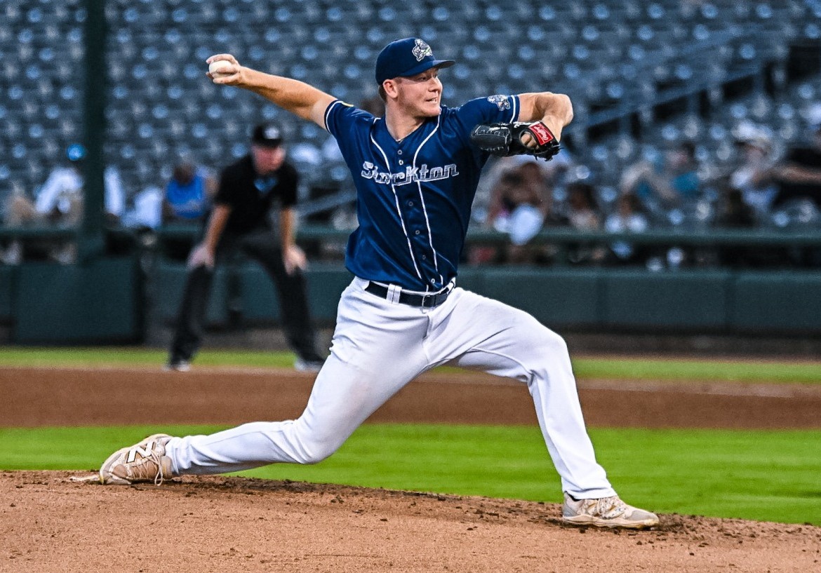 RHP Cole Miller led Stockton to a shutout victory, with a helping hand from right fielder Bobby Blandford, as Stockton secured its third straight win over Lake Elsinore on Friday. The 20-year-old Miller, who was the A’s 4th-round pick in 2023, had his pro career delayed due to Tommy John surgery, but he’s come back strong this season. In Friday’s start for Stockton, he allowed just 1 hit while notching 4 strikeouts through 4 scoreless frames, and he left with the game a scoreless tie. Miller threw just 42 pitches, 30 for strikes, and he’s now compiled an ERA of 1.80 through 45 innings for Stockton this season. This year’s 14th-round pick, LHP Griffin Kirn, threw a scoreless frame in the 5th to pick up the win for the Ports. LHP Brayan Restituyo pitched 3 perfect innings in relief, and LHP Riley Huge tossed a scoreless 9th to complete the one-hit shutout and secure the save for Stockton. Right fielder Bobby Blandford, who was signed as an undrafted free agent last month, belted a three-run homer in the bottom of the 5th to provide all the scoring on the night for the Ports.